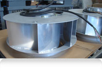 2、風機。風機為雙寬度、雙人口、前傾扇葉的離心扇,並經靜態及動態的平衡測驗及調校。風機低轉速的規劃使運轉噪音減至最低,自對中墊軸承和雙皮帶驅動體係保證機組全年接連安穩運轉。下圖為海洛斯的風機。